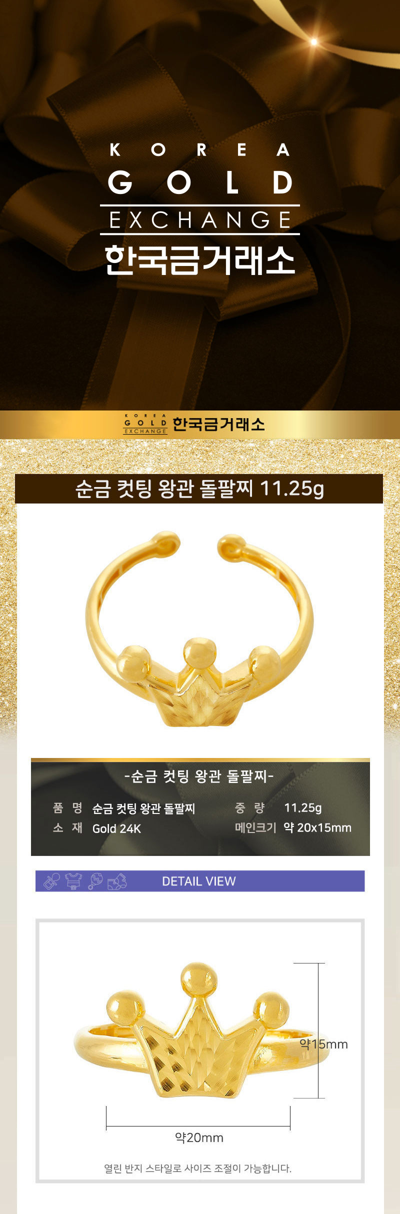 순금 컷팅 왕관 돌팔찌 11.25g