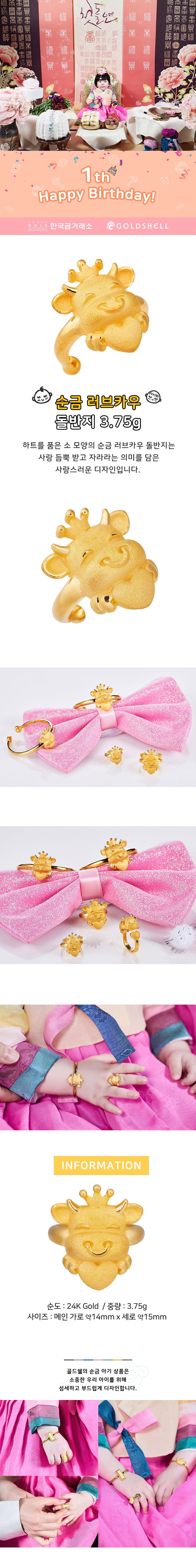 순금 러브카우 돌반지 3.75g